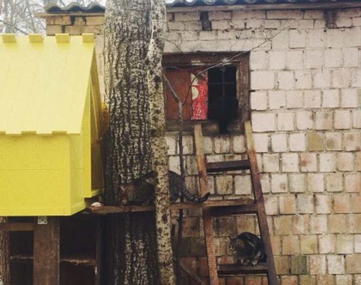 - В Одессе на набережной пляжа "Лузановка" построили котопункт – двухэтажный деревянный домик, в котором животные могут укрыться от холода и покушать.