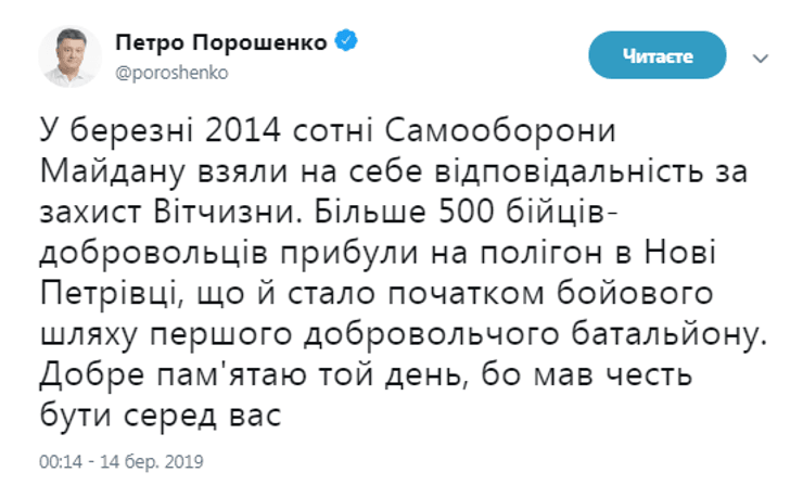 Украинский президент Петр Порошенко отметил этот в своем Twitter.