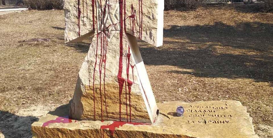 В Харьковской области облили краской памятник погибшим воинам АТО