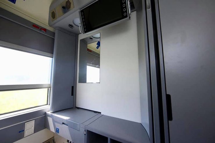 Кравцов отметил, что, в отличие от классических вагонов, в новых вагонах в каждом купе имеется отдельный умывальник, душ и пеленальный столик для младенцев.