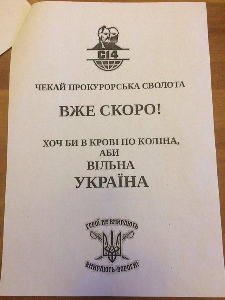 Отметим, что глава националистов из С14 Евгений Карась еще 20 марта написал в Facebook о непричастности организации С14 к рассылке данных писем.