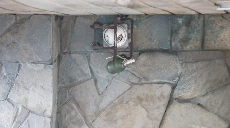 Сегодня утром, в среду, 27 марта, на столичной улице Набережно-Луговой, 3 обнаружили гранату, висящую над входом в магазин Napoli, где продают бытовую химию и продукты, привезенные из Европы.