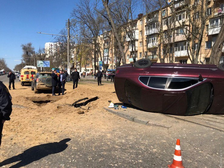 Инцидент случился на Фонтанской дороге в Одессе. Взрыв произошел под землей, как раз под припаркованным автомобилем. Взрывной волной его подняло в воздух и отшвырнуло в сторону на трамвайные пути. Об этом сообщает Думская.