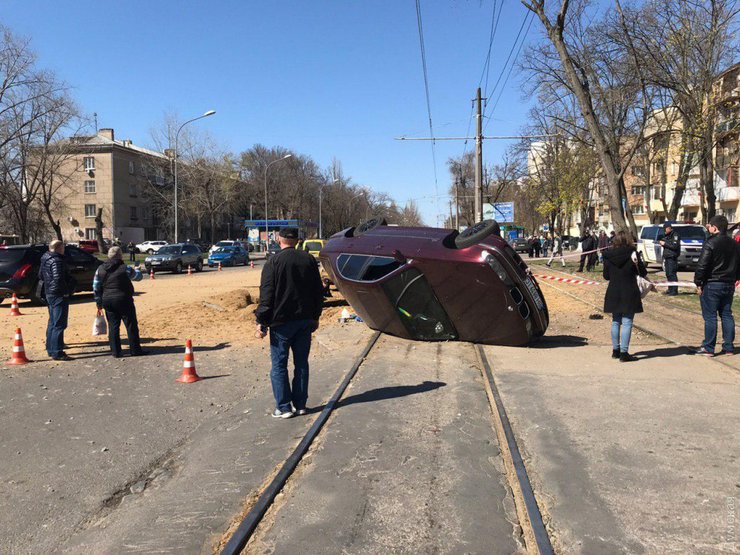 Взрыв в Одессе: машину с водителем перевернуло на трамвайные пути
