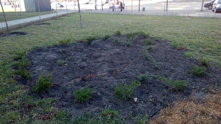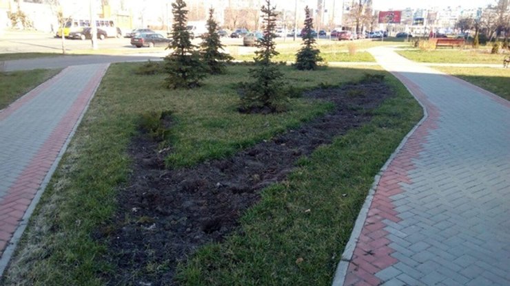 В киевском сквере украли сотни кустов барбариса и можжевельника