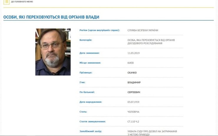 CБУ объявила в розыск журналиста Владимира Скачко по подозрению в сепаратизме.