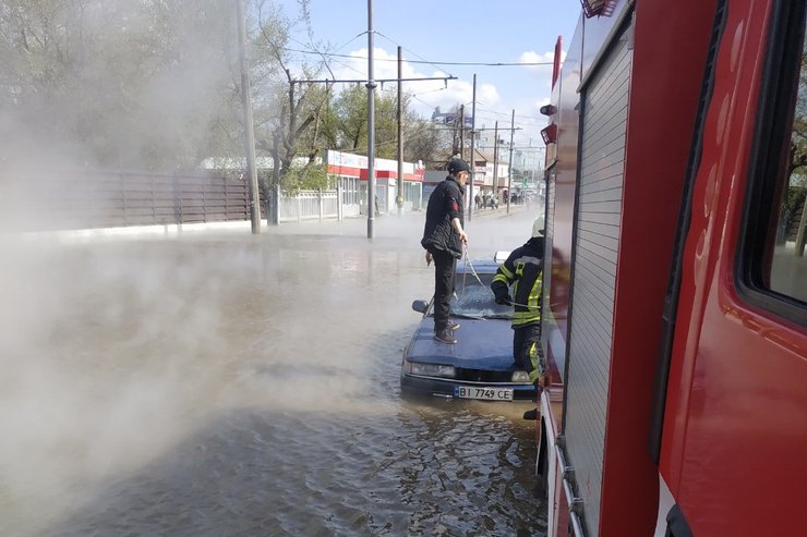 В Харькове спасатели помогли выбраться мужчинам из затопленного горячей водой автомобиля