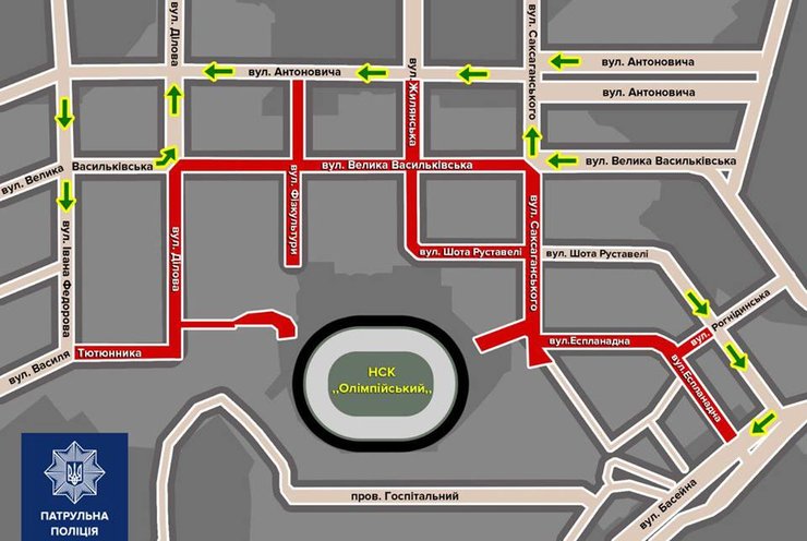 - улица Саксаганского от улицы Эспланадной до улицы Большой Васильковской;