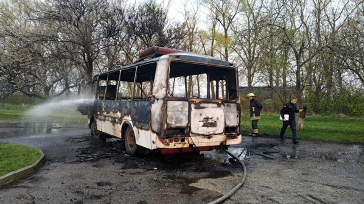 В Черкасской области во время движения загорелся и полностью сгорел автобус ПАЗ.