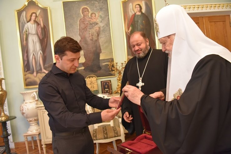 Во вторник, 30 апреля, новоизбранный президент Украины Владимир Зеленский встретился с почетным патриархом ПЦУ Филаретом и предстоятелем УПЦ Московского патриархата Онуфрием.