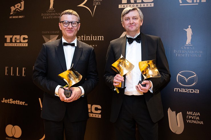Денис Иванов и Сергей Лозница, победители в номинации "Лучший фильм" - "Донбасс"