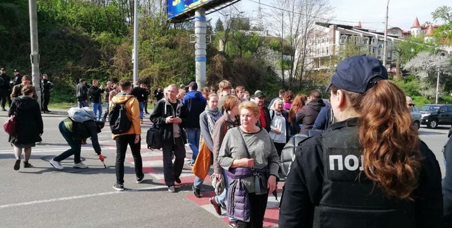 В Киеве протестующие против застройки Протасова Яра частично перекрыли одноименную улицу.