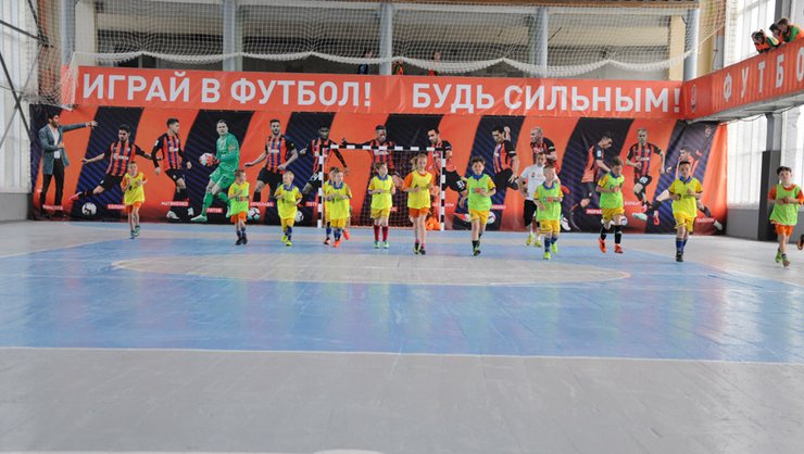 Между командами Красногоровки и Марьинки был проведен выставочный матч, где символичный первый удар по мячу сделала самая юная спортсменка.