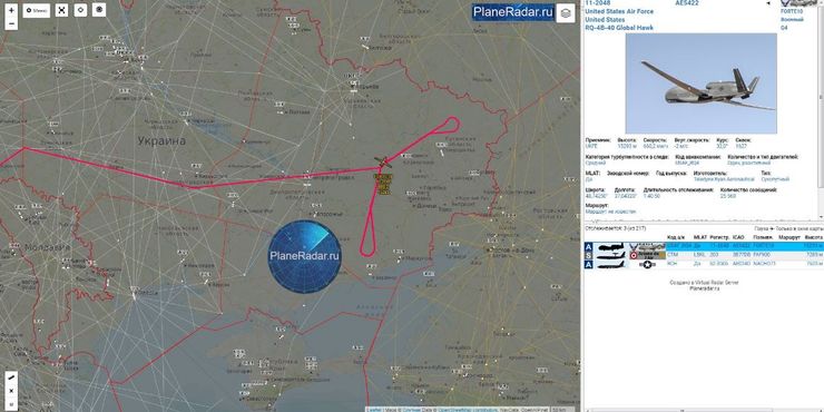В 13:00 по киевскому времени беспилотный летательный аппарат RQ-4 Global Hawk вылетел с американской базы на острове Сигонелла и отправился на Донбасс.