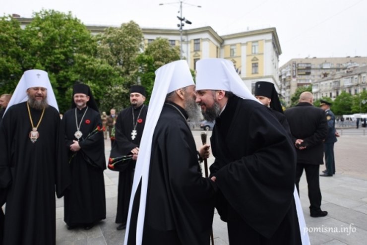 Во время церемонии чествования памяти погибших во Второй мировой войне 9 мая в Киеве встретились блаженнейший митрополит Киевский и всея Украины Епифаний и митрополит УПЦ МП Онуфрий. Священники пожали друг другу руки и поговорили.