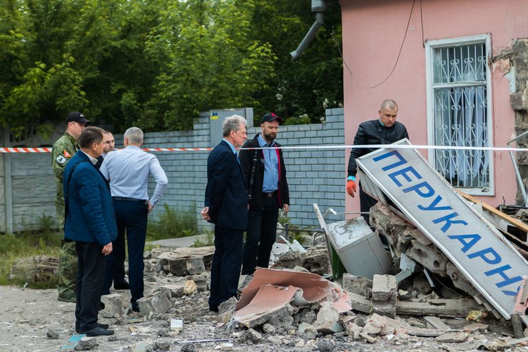 В результате взрыва полностью разрушен коридор парикмахерской. Взрыв был настолько сильным, что двери парикмахерской отбросило на противоположную сторону улицы, а обломки разлетелись по всей дороге.