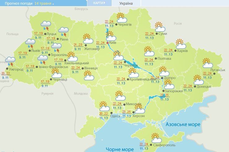 Температура воздуха 14 мая в течение дня составит +20...+25 градусов, только на западе страны похолодает до +13...+19 градусов, а местами и до +10...+14 градусов. По ее словам, холод придет из соседней Польши.