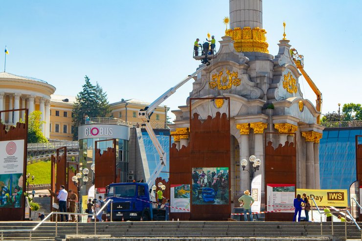 Акция началась в 10:00 на Майдане Независимости. С самого утра в центр столицы свезли спецтехнику и подъемные краны. Напомним, что высота монумента составляет 62 метра.