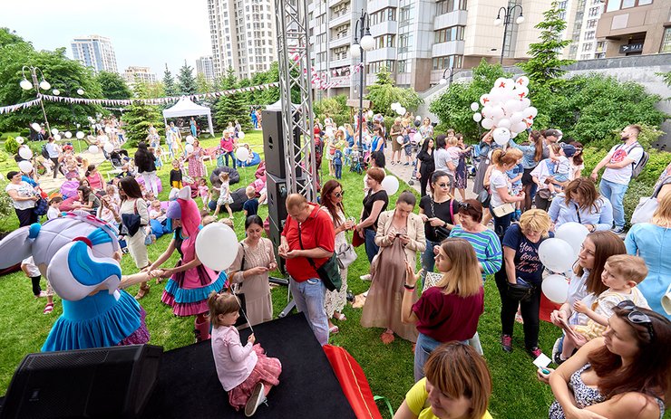 В этот день ландшафтный парк "Сады мира", составляющий как и другие зеленые насаждения квартала около трети его общей площади, стала грандиозной "Семейной зоной". В этом импровизированном мини Диснейленде, где помимо сцены, на которой выступала звезда популярного сериала "Школа" Анна Тринчер, были представлены различные развлечения для юных резидентов ЖК. Творческие мастер-классы, занимательная химическая лаборатория, салон красоты с аквагримом, активные игры на надувных горках и батутах, веселые аниматоры в костюмах любимых персонажей и, конечно, вдоволь сладкой ваты и попкорна. Благодаря усилиям организаторов, среди которых был расположенный на территории комплекса инновационный эко-садик Академия Счастья LeapKids, семейный отдых стал не только веселым, но и познавательным.