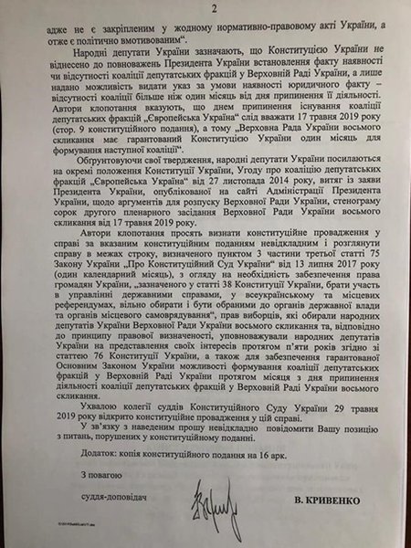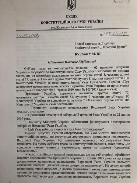 Бурбак опубликовал письмо судьи-докладчика Виктора Кривенко, в котором сообщается об открытии конституционного производства.