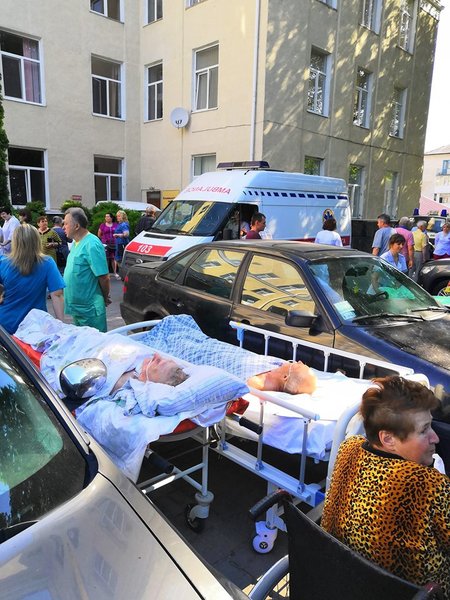 Пациентов из Луцкой больницы эвакуировали на носилках после "минирования"