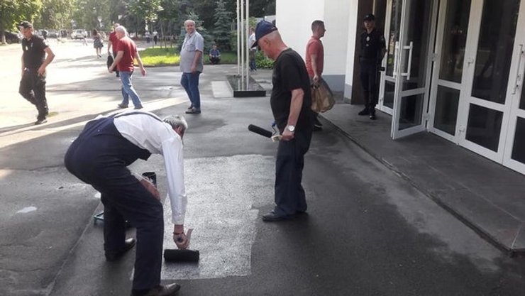 Перед зданием Министерства внутренних дел закрасили надпись "убийцы", сделанную накануне активистами из-за смерти 5-летнего Кирилла.