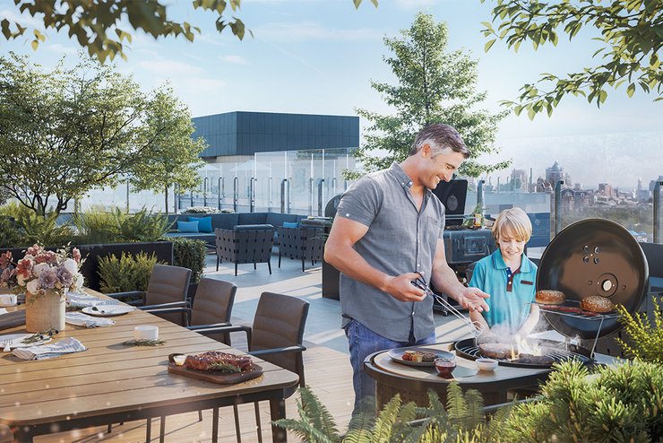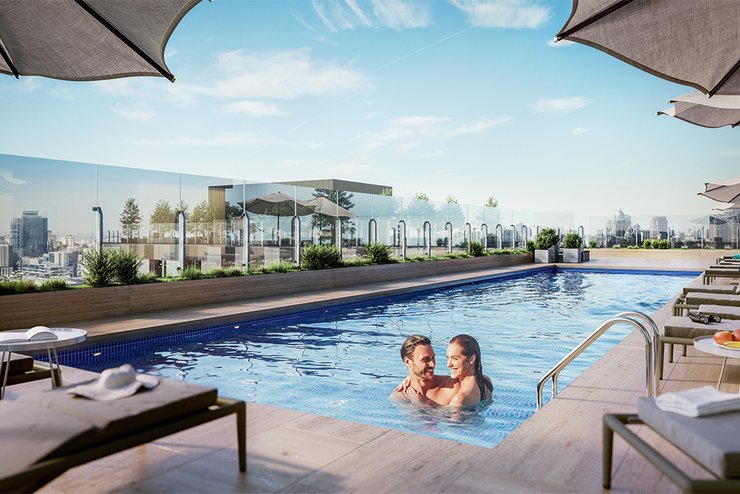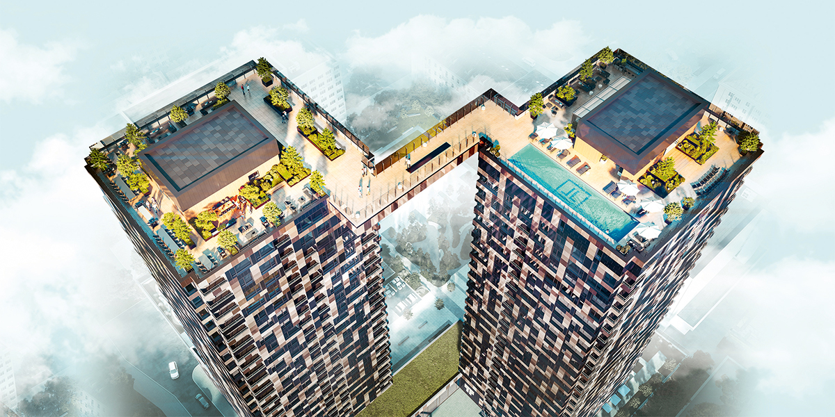 Разнообразная квартирография включает как функциональные апартаменты для деловых людей с жестким тайм-менеджментом, так и роскошные двухуровневые пентхаусы для гедонистов городского образа жизни, ценящих эксклюзивность и инновационность образа жизни. К их услугам уникальные общественные пространства: от элегантного лобби с внутренней арт-зоной, где проходят джазовые вечера и выставки современного искусства, до воздушного моста на эксплуатируемой крыше, который соединяет бассейн и зону барбекю на высоте 84 м. Не забыты и самые юные резиденты комплекса — для них девелопер приготовил безопасные игровые площадки и детский сад от прогрессивной сети Академии современного образования А+.