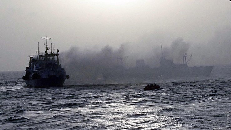 Во время пожара на украинском траулере "Иван Голубец" пропал моряк-моторист, судно продолжает гореть у берегов Мавритании.