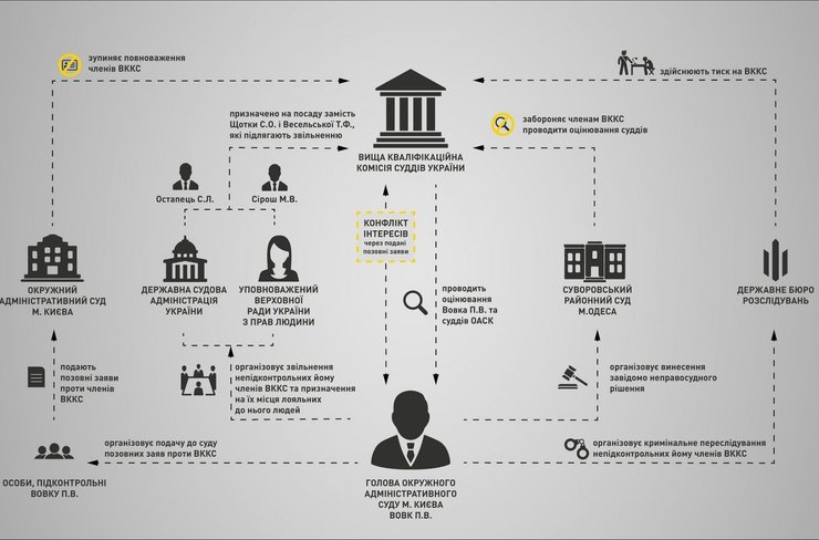 "Фактически происходит системное вмешательство в рассмотрение дел судами со стороны, в первую очередь, руководства этого суда. Но не только в рассмотрение дел, а и в деятельность других органов государственной власти, высших органов государственной власти, в том числе Конституционного суда, министерств, ведомств, судов, что, по нашей оценке, фактически составляет угрозу национальной безопасности, потому что вне судебного процесса, можно сказать в ручном режиме, принимаются решения", – рассказал Горбатюк.