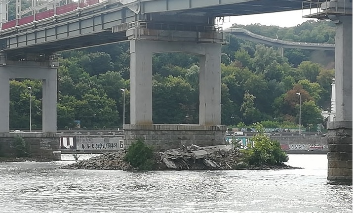 В Киеве обвалилась часть пешеходного моста, который соединяет правый берег и Труханов остров. Обломки конструкции упали под опору.