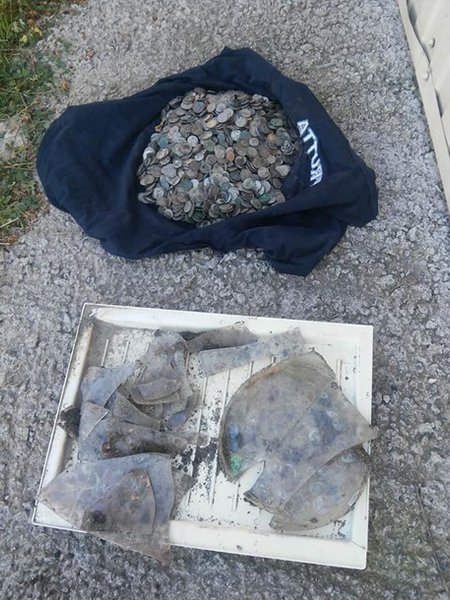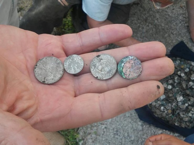 Старые монеты были закопаны в стеклянном сосуде на глубине около метра