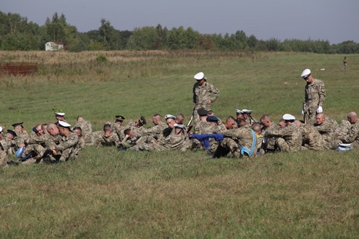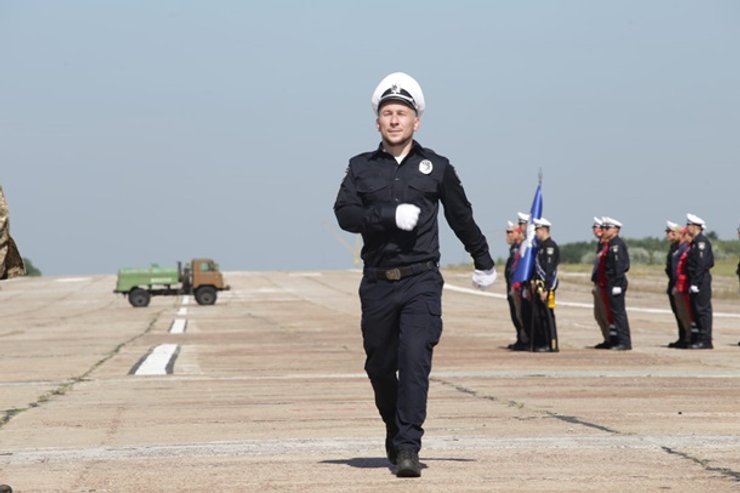 Несмотря на жару, военные и представители других силовых формирований Украины отшлифовывали мастерство строевого шага