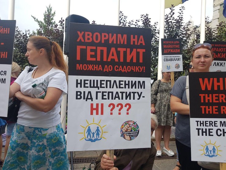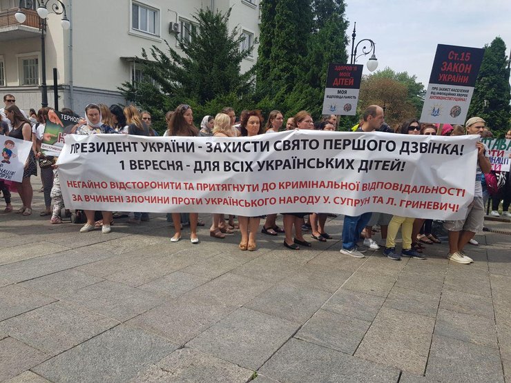 Под здание Офиса президента вышли на акцию протеста родители, которые выступают против обязательной вакцинации своих детей и запрета для них посещать школы. Об этом сообщает корреспондент Фокуса.