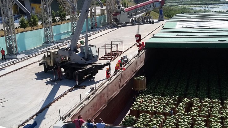 В Переяслав-Хмельницком в Киевской области разгрузили баржу с 400 тонн херсонских арбузов. Об этом сообщает пресс-служба компании "Нибулон" в Facebook.