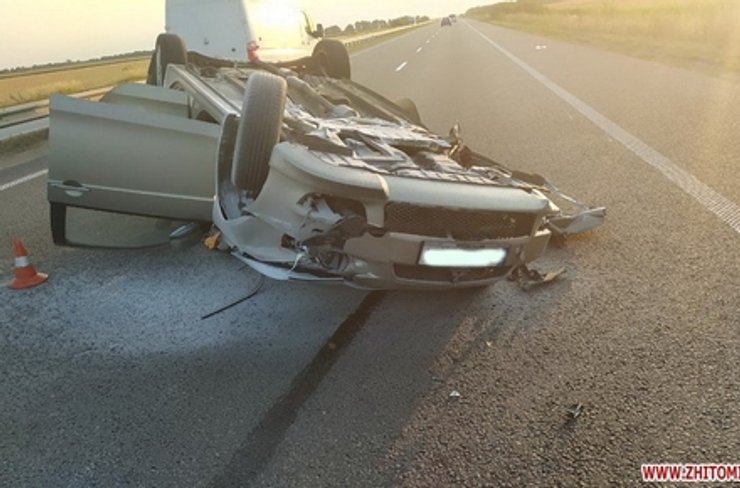 "Предварительно установлено, что около 17:50 на трассе Киев-Чоп, вблизи г. Коростышев, 25-летний водитель "Мицубиси", направляясь из столицы, не справился с управлением и столкнулся в правой полосе движения с грузовиком "Камаз", ехавшим впереди. От удара легковушка перевернулась, а ее правое переднее колесо отсоединилось от конструкции и, по инерции двигаясь, попало в автомобиль "Фольксваген", который ехал позади", – сказано в сообщении.