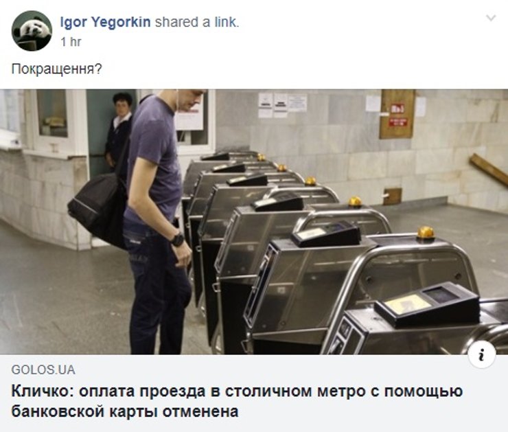 Ряд СМИ со ссылкой на мэра Киева Виталия Кличко распространили информацию о том, что в столичном метро отменили оплату проезда с помощью банковской карты. В частности, об этом написал ресурс Голос.ua