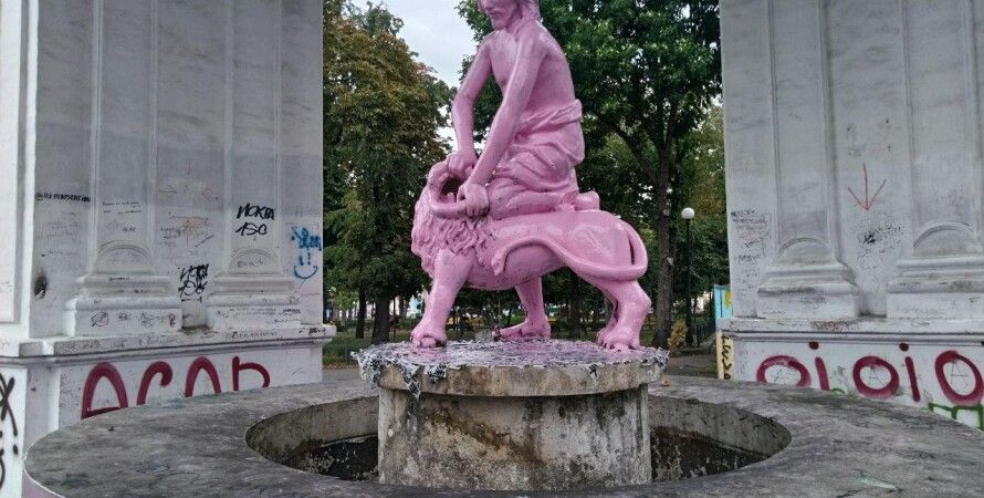 В ночь на 4 сентября неизвестные раскрасили местную киевскую достопримечательность – фонтан "Самсон" – в розовый цвет. Фокус интересовался, что грозит художникам и кто будет заниматься реставрацией фонтана