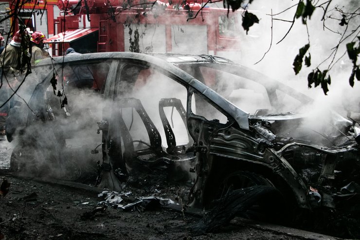Как рассказал владелец машины, он только зарядил аккумулятор и пошел домой. Через 10 минут ему сообщили, что машина в огне. Очевидцы утверждают, что возгорание пошло из под левого заднего колеса. Именно там и находятся батареи.