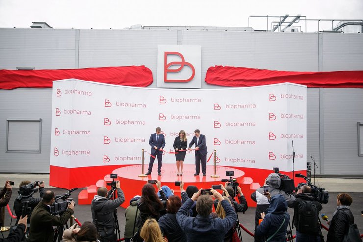Почетные гости - Константин Ефименко, Президент группы компаний Biopharma, Елена Кошарна, главный исполнительный директор Horizon Capital, исполнительный вице-президент фонда американского правительства Western NIS Enterprise Fund, председатель Совета директоров Американской торговой палаты и Василий Хмельницкий, основатель холдинговой компании UFuture и фонда K.Fund в праздничной обстановке открыли построенный комплекс, торжественно перерезав красную ленту.