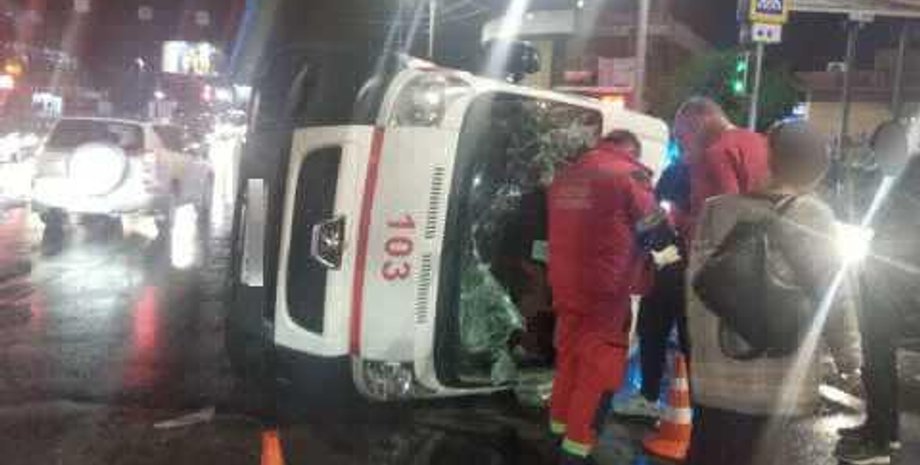 "Предварительно установлено, что 21-летний водитель легковушки "Nissan" при переезде перекрестка не пропустил автомобиль скорой помощи, который двигался с включенными проблесковыми маячками", – сказано в сообщении.