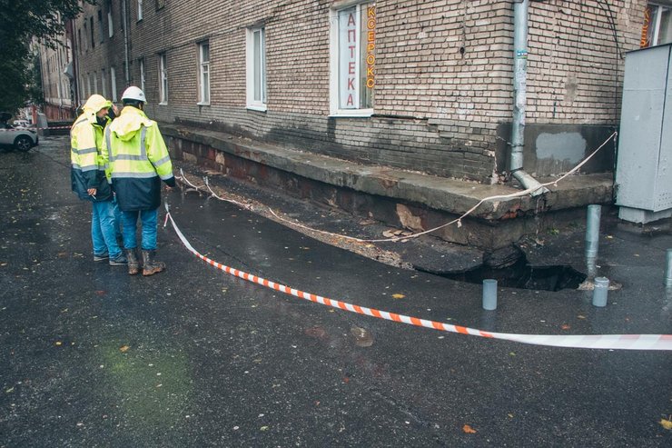 Из-за строительства метро и обильных дождей образовалась дыра шириной в 3 метра