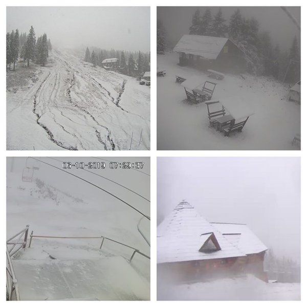 В воскресенье, 6 октября, в Карпатах выпал и продолжает идти снег. Об этом свидетельствуют данные с вебкамер горнолыжных курортов.