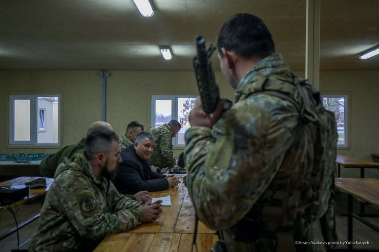 Министр внутренних дел Арсен Аваков посетил базу полка "Азов" под Мариуполем. Об этом он сообщил на своей странице в Twitter.