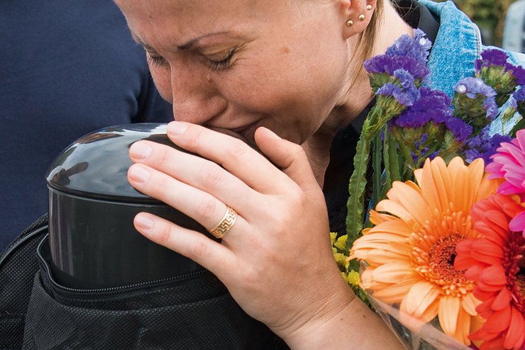 Перед захоронением Татьяна целует на прощание урну с прахом супруга. Александр ушел из жизни в 41, он умер от сердечного заболевания спустя год после возвращения из плена