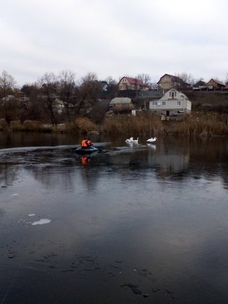 В Киевской области спасли 15 лебедей, которые попали в ледяную ловушку