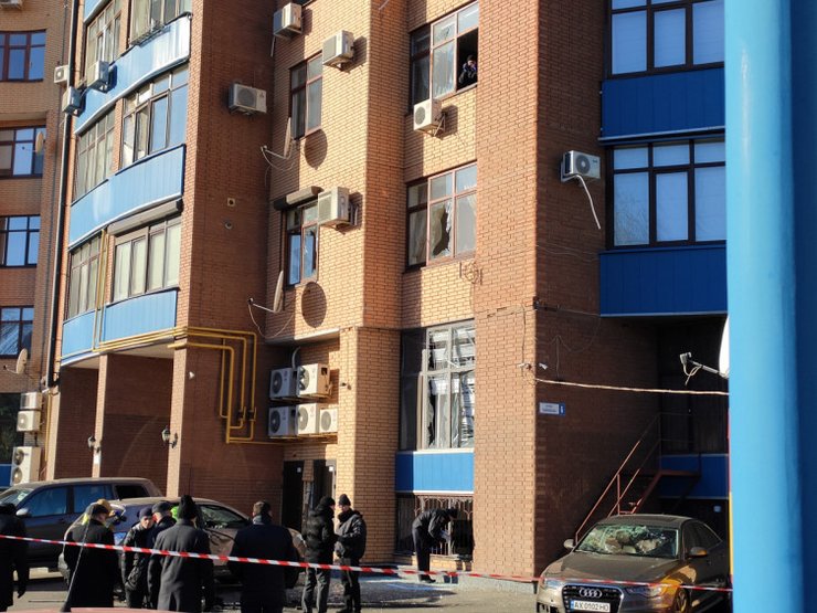 Местное издание "Depo.Харьков" сообщает, что повреждены как минимум четыре автомобиля. Кроме того, выбиты окна в квартирах и двери в подъезд.