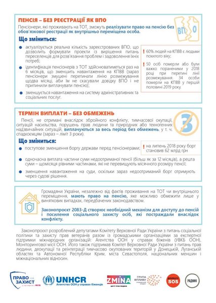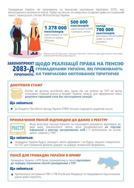 • предоставление людям, которые жили на временно оккупированных территориях и не могли платить страховые взносы, права докупить стаж без применения санкций;