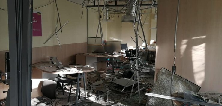 По его словам, окна и двери были вынесены взрывом, помещение почти полностью разрушено.