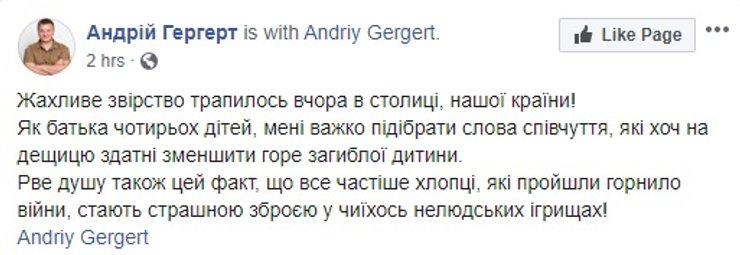 Комбат при этом допустил, что его бывший подчиненный мог связаться с уголовниками, поскольку в последние месяцы он якобы не отвечал на звонки. Одновременно Гергет призвал не возлагать вину за преступление на все добровольческое движение в целом и отметил, что в стране так и не создана система реабилитации бойцов после возвращения с фронта.