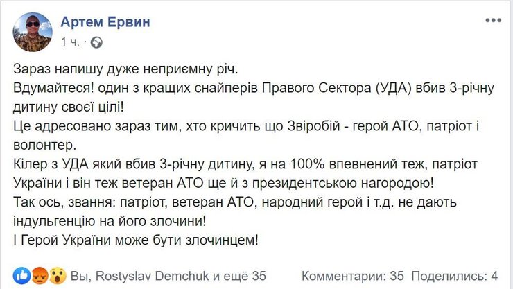 Многие пользователи, имеющие отношение к добровольческому движению, осудили преступление, но высказали предположение, что добробаты намеренно пытаются дискредитировать.